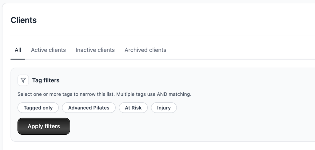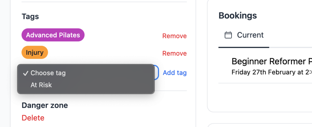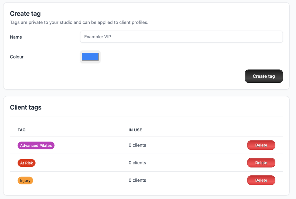 Tags make it easy to manage your clients. You can create as many custom tags as you like for your studio and colour code them to your liking to create a powerful client management system that is uniquely yours.