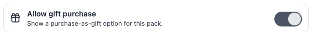 - Only packs with Allow gift purchase turned on can be bought as gifts.