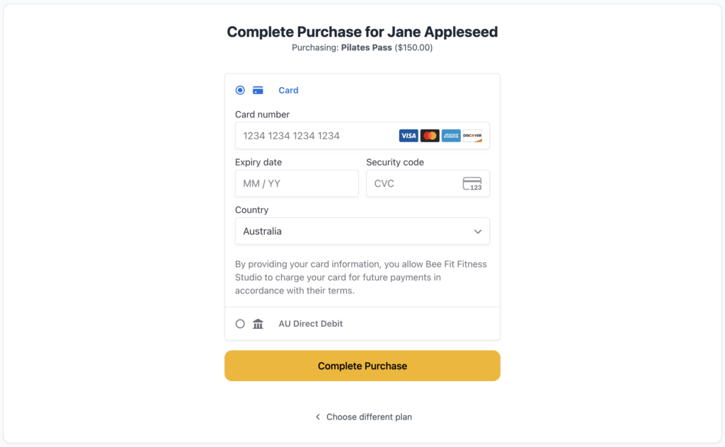 You can accept any payment that your studio accepts ordinarily at the Point of Sale. You are responsible for ensuring the user has viewed and accepted both Clovo’s terms of service and your own studio terms and waivers before completing the purchase.