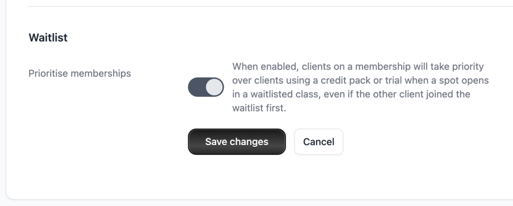 Your most loyal clients — the ones who’ve committed to a membership — can now be given first dibs when a spot opens up on the waitlist over credit pack and trial clients.